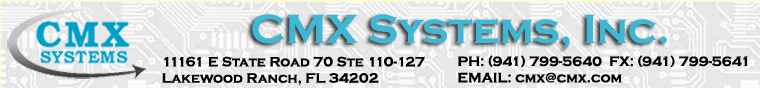 All content is subject to change without notice Copyright material 2014© All Rights Reserved. Site and all contents are the sole property of CMX Systems, Inc. No part of this site may be copied or used without the express written permission of the owner. Web Services by Unicorn Web Development, Inc. |